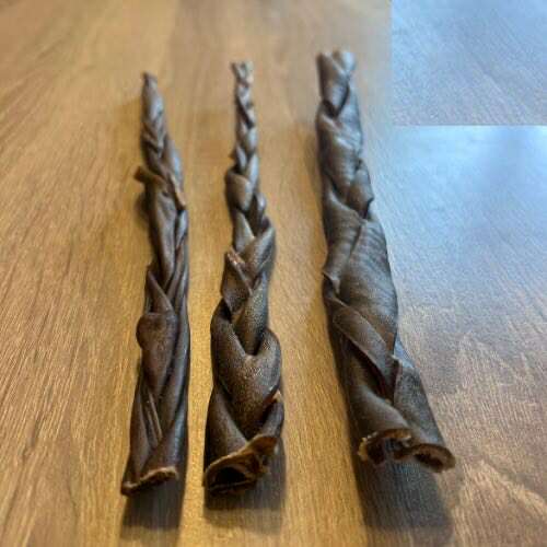 Braided Venison Skin is a longer-lasting dog chew, suitable for all ages, sizes, and breeds.