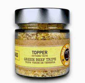 Dried Green Tripe Dog Food Topper comes in a 100g jar