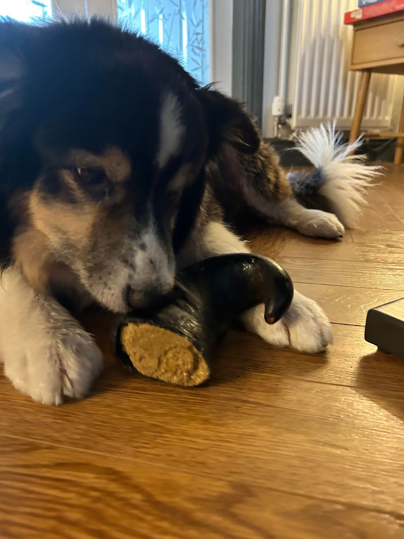 Peanut Butter Filled Buffalo Horn is a longer-lasting chew