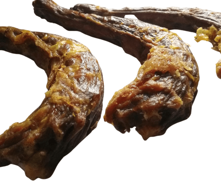 Turkey necks are healthy dental chews for dogs. If brushing your canine’s teeth is not your thing, or your dog will not tolerate it, why not give them turkey necks instead? The chewing process can naturally aid the removal of plaque and tartar build-up on their teeth.